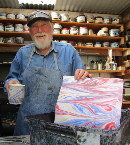 He now teaches workshops in order to keep the great, ancient art alive. For anyone intending to take up marbling as a hobby, be warned; it becomes compulsive before you realise what a damp, cold, smelly, dirty, solitary activity it is!